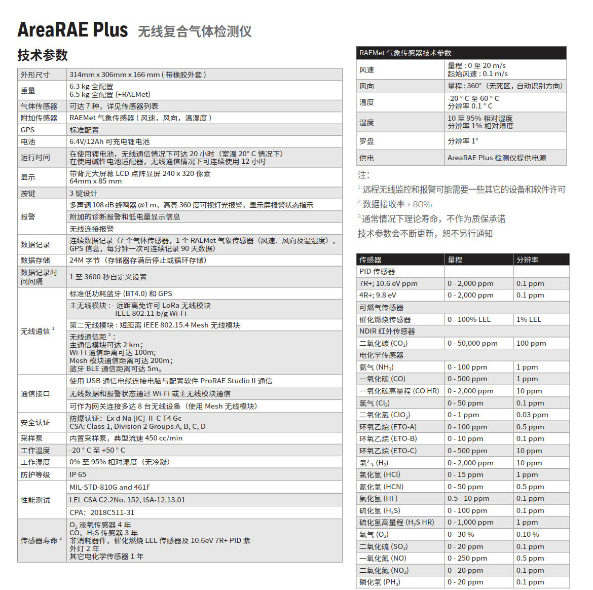 AreaRAE Pro 無線復合氣體檢測儀是一款具有遠程通信能力的可移動式區域檢測儀,它可同時檢測有毒有害氣體、可燃氣體、揮發性有機化合物等多種氣體和放電離輻射,也可以測量影響氣體擴散速度和方向等的氣象參數。