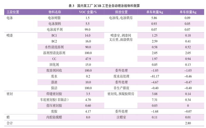 為了明確油漆車間各工藝環節的實際排放情況,本文就國內某工廠2C1B工藝全自動噴涂線的實際情況做了以下實測統計。