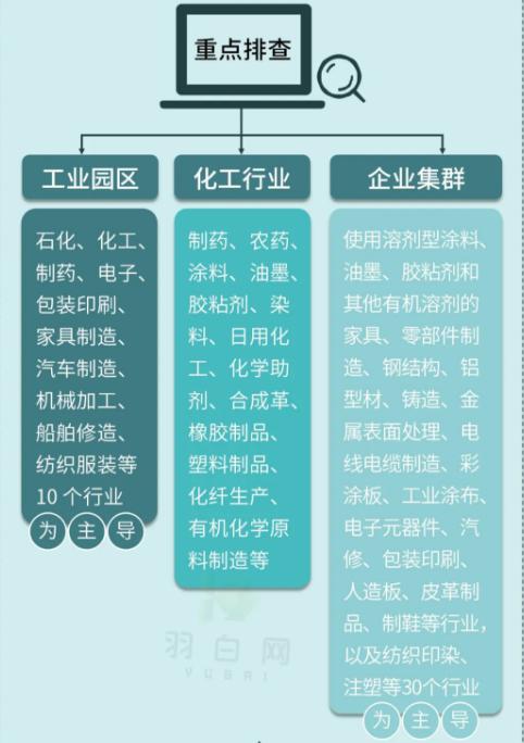VOCs攻堅方案將對如下行業進行VOCs管控重點排查: