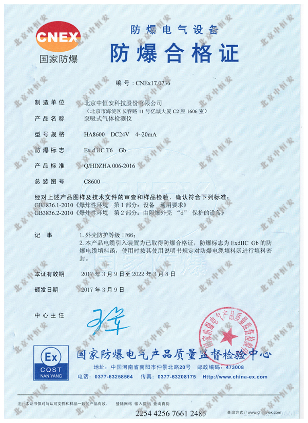HA8600是一款隔爆型泵吸式配備智能光離子化傳感器的有機氣體檢測儀。儀器采用了智能化處理平臺和數字化傳感器技術,實現了傳感器離線標定和環境適應功能,還可根據用戶要求定制不同量程。在外部功能上,檢測儀具有圖文顯示和本地聲光報警等功能,同時,檢測儀采用磁棒外部調節的方式,使操作人員在現場無需開蓋,即可方便的進行標定和維護。具有穩定性好、靈敏度高、反應速度快、自我診斷功能、安裝方便等優點。廣泛應用于石油、化工、環保等領域。